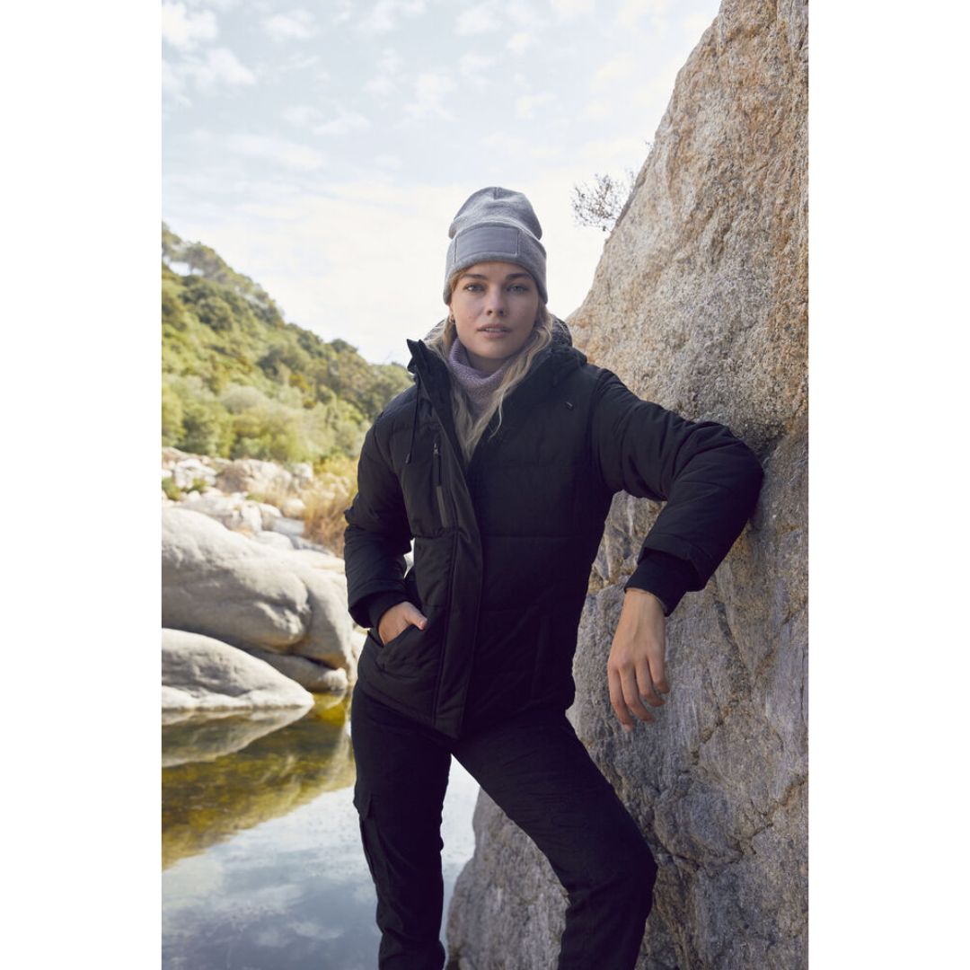 Varm og polsteret vinterjakke som har en vandtæt SBS lynlås på lommer og brystlomme. Den har en justerbar og aftagelig hætte og to store indvendige meshlommer. Der er løbegang nederst og i damemodellen en løbegang i taljen. 2×2 ribbede manchetter i ærmerne.