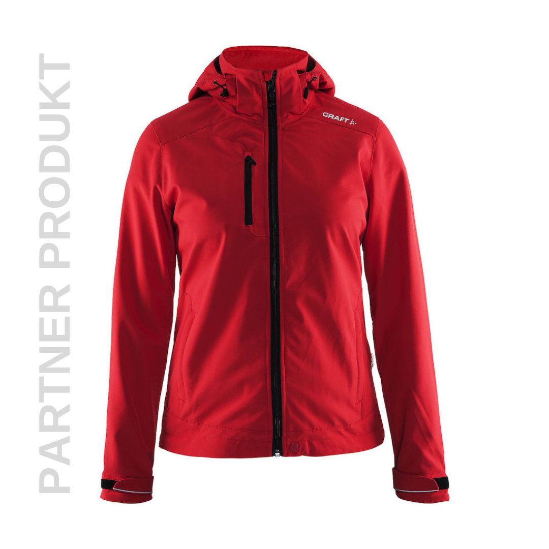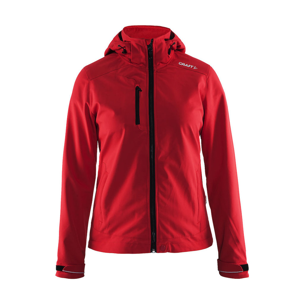 Softshell skaljakke i VentAir materiale fra Craft. Det er et materiale som er vandafvisende og vindtæt. Så den holder de våde og blæsende vejrforhold ude og er god sammen med et mellemlag, som giver varme. Jakken har tre lommer med lynlås. Jakken har en justerbar og aftagelig hætte og justerbare manchetter.