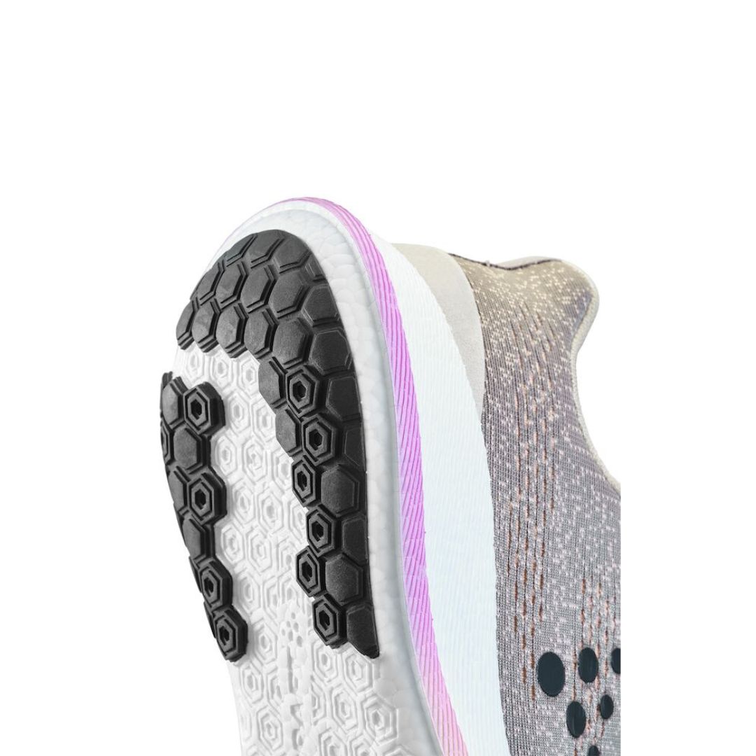 Løbesko der giver en god affjedring og stabilitet for et jævnt og hurtigt løb. Et par performance-løbesko med blødere Px Foam i mellemsålen, der giver et stabilt og responsivt løb med eksplosivt afsæt. De er gode til hastighedstræning eller dagligt løb. Du vil få en oplevelse af hoppende og energisk løb der giver dig fremdrift for hvert skridt. Ydersålen har et sekskantet mønster der giver et godt greb til underlaget. Overdelen er produceret i et let og åndbart materiale der giver en god ventilation.
