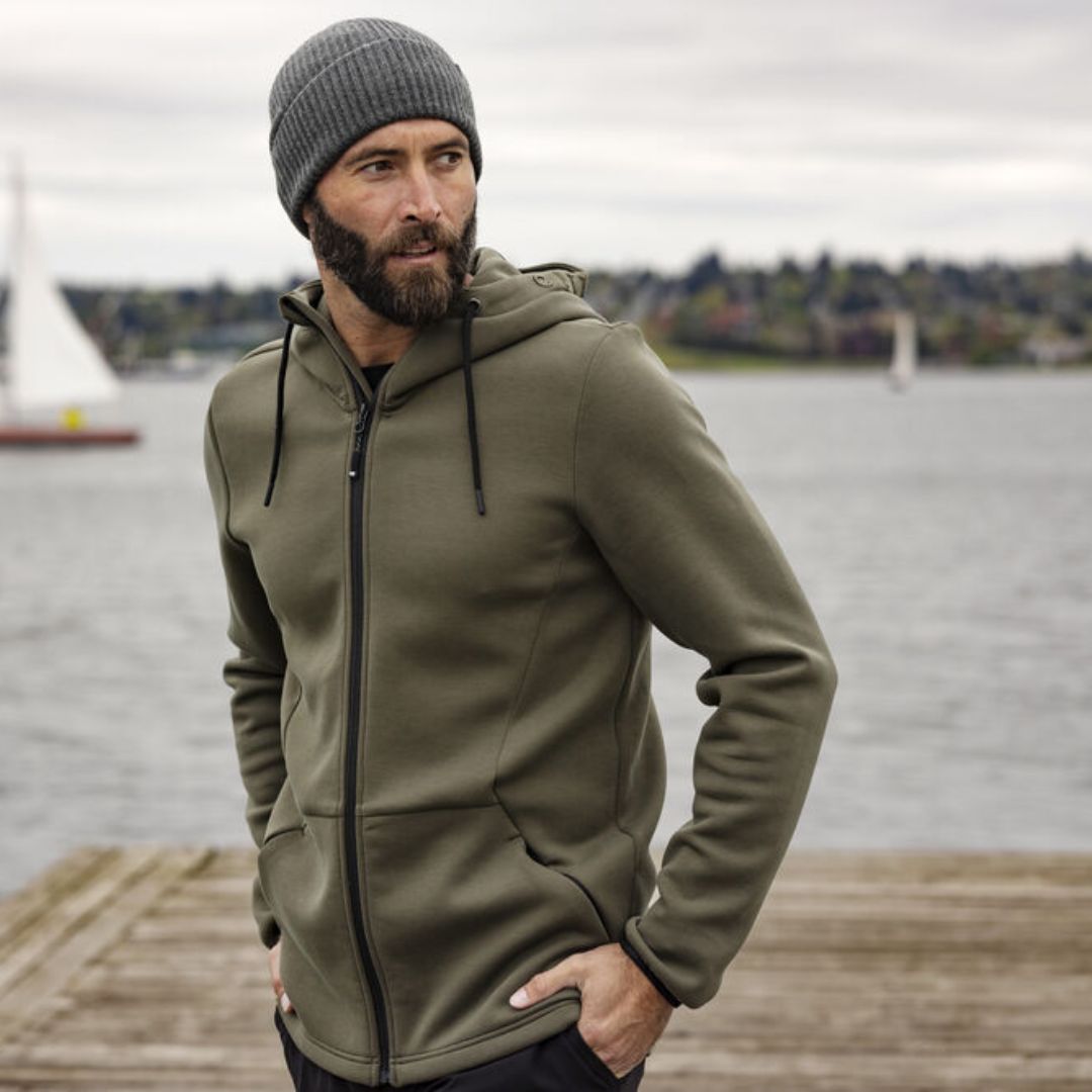 Hættetrøje med de flotteste detaljer og i et skønt materiale. Strækbart i letvægts- og miljøvenligt stof med op til 70% recycled polyester. Den perfekte lag-på-lag trøje til hele året. Trøjen har en høj krave som hjælper med at beskytte mod vind, og som let kan justeres med snøre. Den har to lynlåslommer foran. Dekoreret med CUTTER & BUCK-logo broderet på hættens kant. Stil komfort og bæredygtighed.