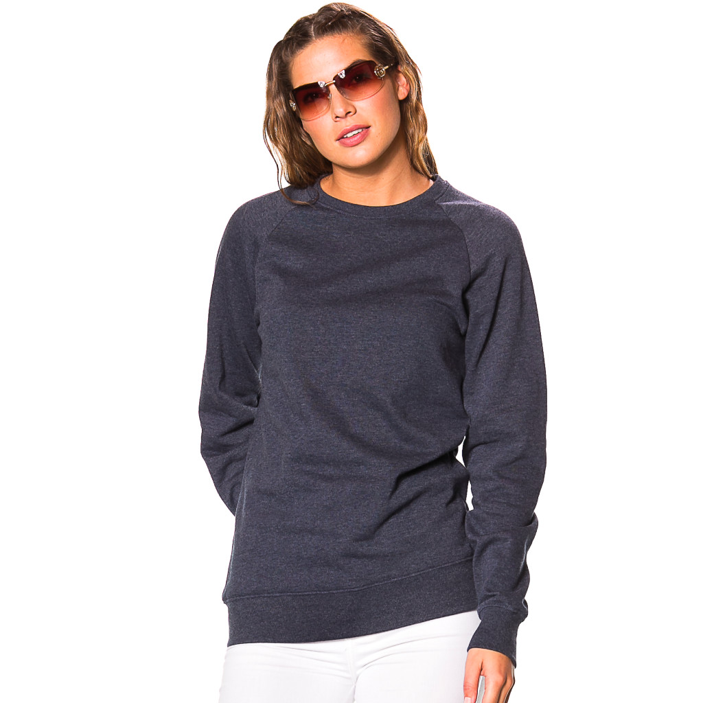Moderne sweatshirt med rund hals og reglanærmer som giver en god bevægelsesfrihed. Hals, ærmer og bund er afsluttet med en ribkant. Blusen har en blød børstet inderside.