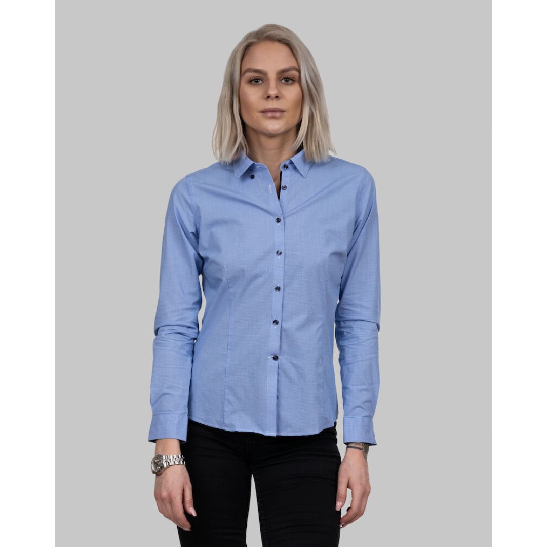 Fin skjorte med stræk og udført i det fineste micromønster for at give skjorten et andet udtryk. Stræk materialet øger bevægelsesfriheden med 12% og er lavet i en høj non-iron klasse. Den kan maskinvaskes. Blødt kurvet udseende med sit todelte bærestykke over skuldrene. De tapede sømme gør at skjorten står skarpt vask efter vask uden folder. Moderne krave og skjulte knapper, samt skråskåret snit ved manchetterne og huller til manchetknapper. Perlemorsfarvede knapper og kurvet snit nederst på skjorten.