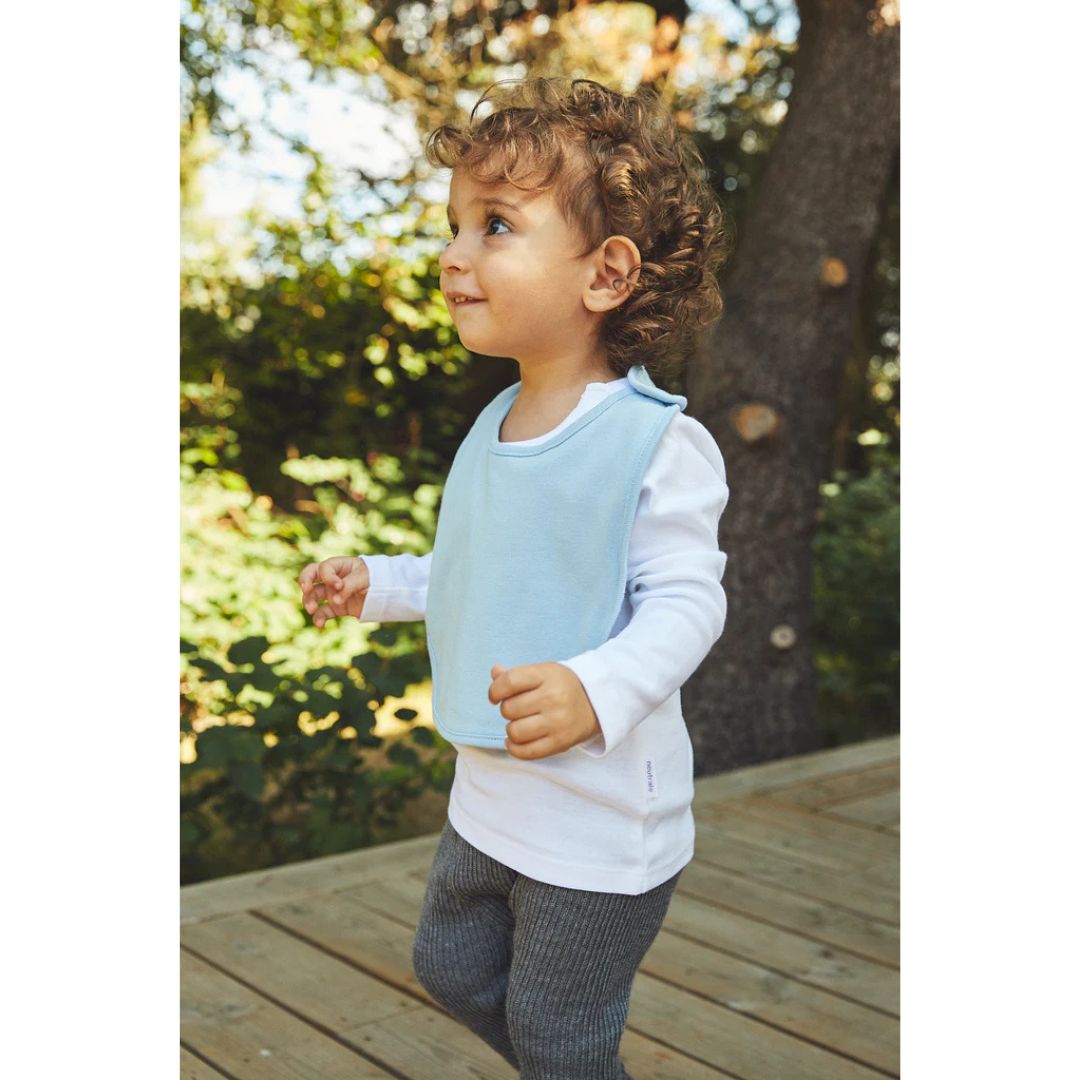 Hagesmæk i et blødt 1×1 rib materiale med metal tryklås bag på og elastiske kanter.