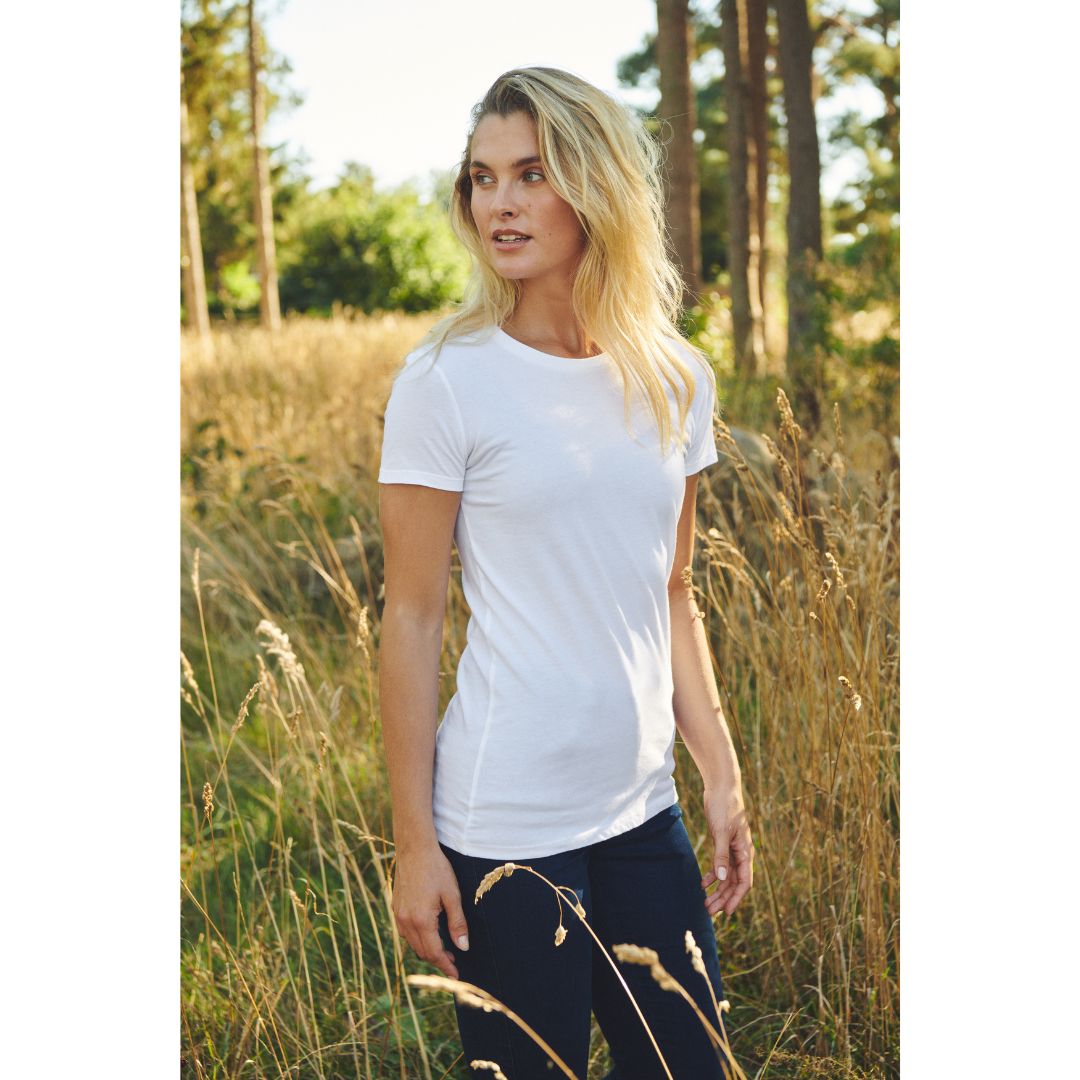 Miljøvenlige single jersy t-shirt med rund hals. Den er fremstillet i et blødt materiale for optimal komfort. Den er let figursyet.