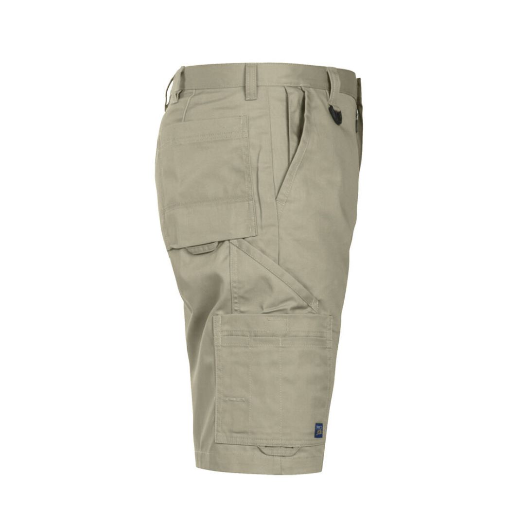 Arbejdsshorts med sidelommer foran, sikkerhedslomme med lynlås på højre side. Derudover er der to baglommer og to lårlommer, hvor den venstre har lomme til mobilen indeni. Højre benlomme har plads til kuglepenne, papir og tommestok. D-ring foran.