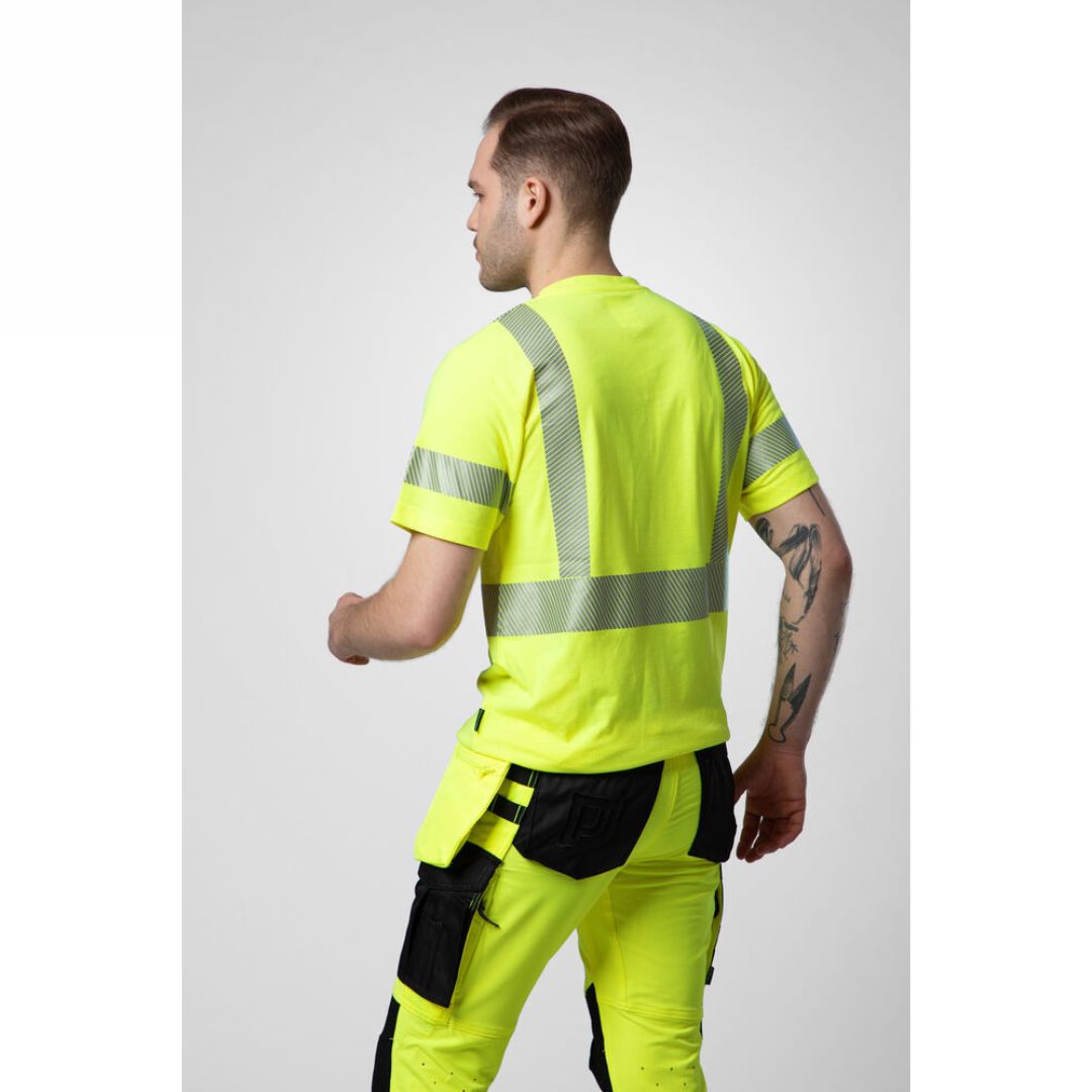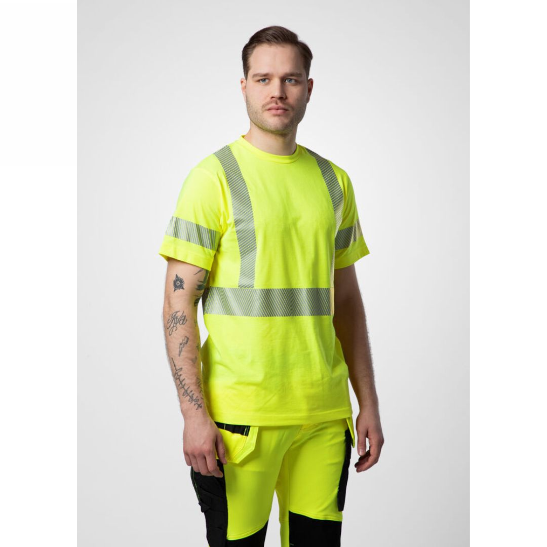 T-shirt i en polyester og bomuldsblanding der giver en fantastisk følelse af bomuld mod kroppen. Skårede reflekser fra 3M.